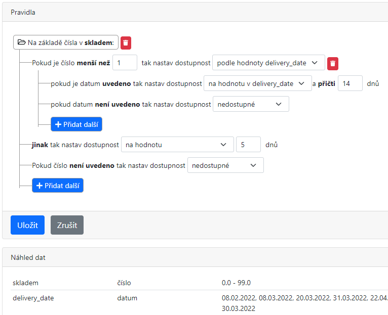 Jednoduše si vyberete, jak chcete zpracovávat data a následně napárujete ty, které souvisí s dostupností výrobku.
